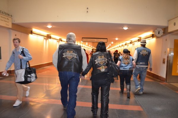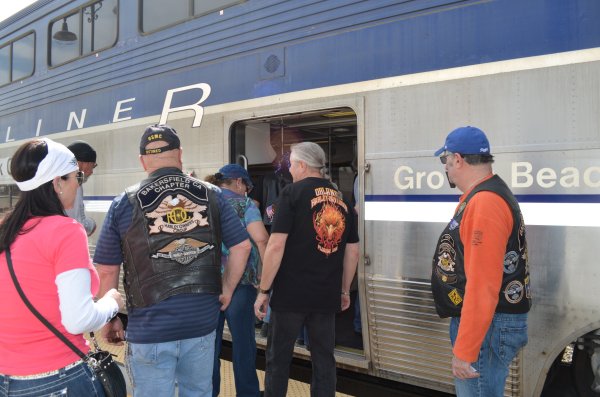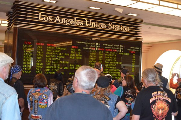 On February 22nd, 2014, Shelley Mulholland lead the LOH ride to Olvera Street in Los Angeles via Glendale. 9 LOH Members, 11 HOG Members, one guest and 17 bikes made their way to the Glendale Train Station where they parked their bikes and boarded the Amtrak train to Union Station and walked across the street to Olvera Street. Lunch and shopping was the order of the day! Below are some pictures of the day. (Click any picture for a larger image.)